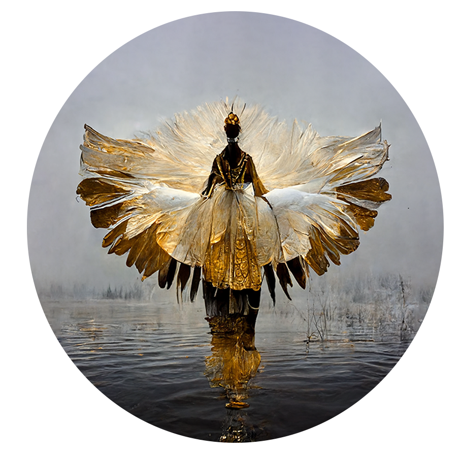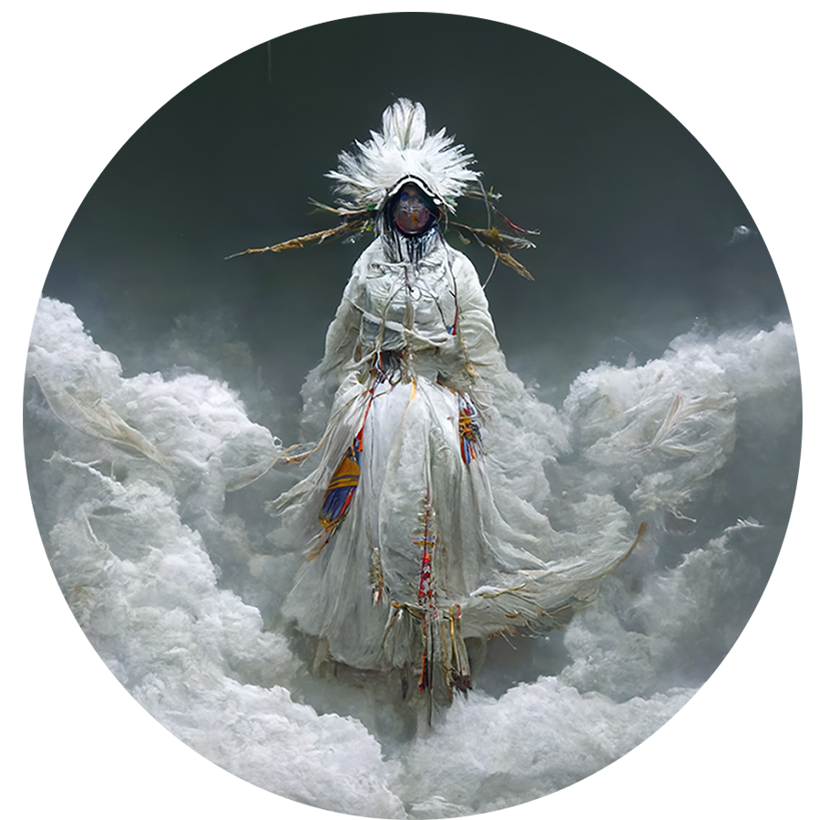 Богиня-Мать – носительница знания и культурных традиций предков, передающая их своим детям. Это сильная женщина с несгибаемыми характером и волей. Но также она может представать сразу в трех образах. Образ Возлюбленной раскрывает отношения мужчины и женщины. Такой женщине присущи загадочность, таинственность, жертвенность, мистичность. Образу Святой соответствует чистота сердца, возвышенность чувств и помыслов, гуманность. А в образе женщины Земной Мув Аӈки может предстать как дочь, жена, мать, бабушка и т.д. В нем отражаются особенности жизни на Севере, где во главу угла ставятся трудолюбие, выносливость, стойкость, мудрость, способность общаться с духами.